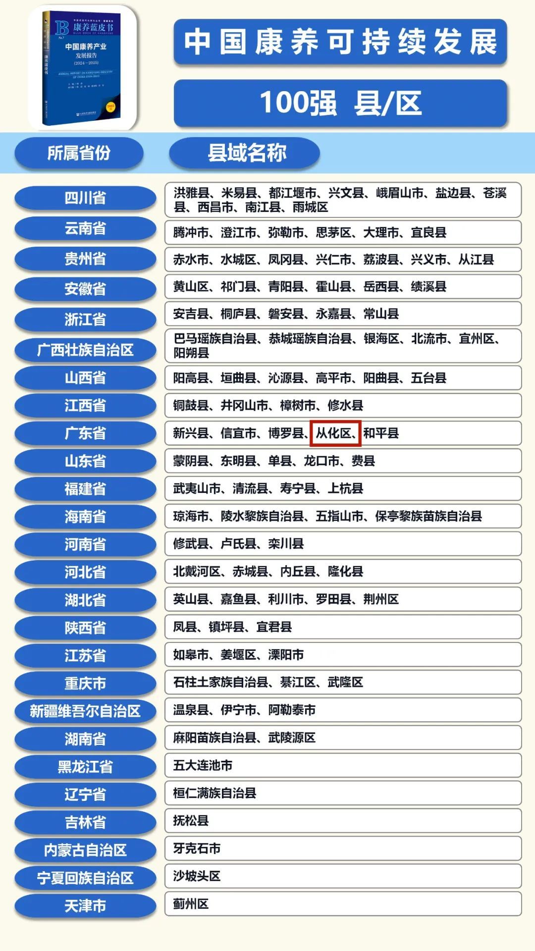 被誉为“康养产业风向标”的《康养蓝皮书》已连续七年发布,其评估体系涵盖生态环境承载力、产业融合度、政策支持力等多项核心指标。在今年公布的百强县榜单中,从化区与广东新兴县、信宜市等同列广东省入选名单,成为华南地区康养产业的标杆样本。